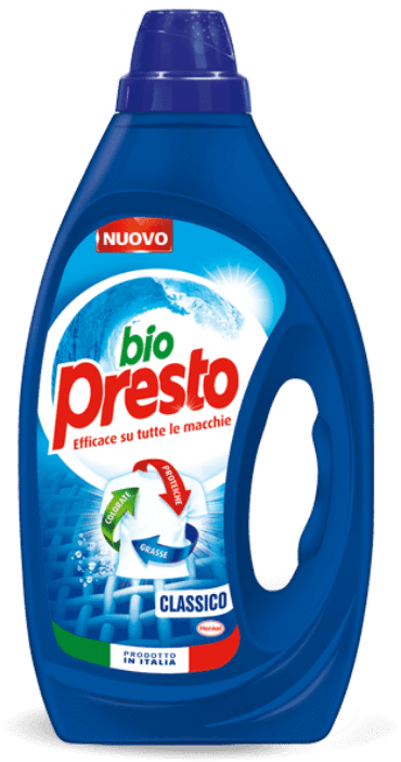 Stirare non sarà più un incubo con il nuovo Bio Presto. Efficace contro le macchie e per capi più facili da stirare grazie alla formula anti-pieghe.