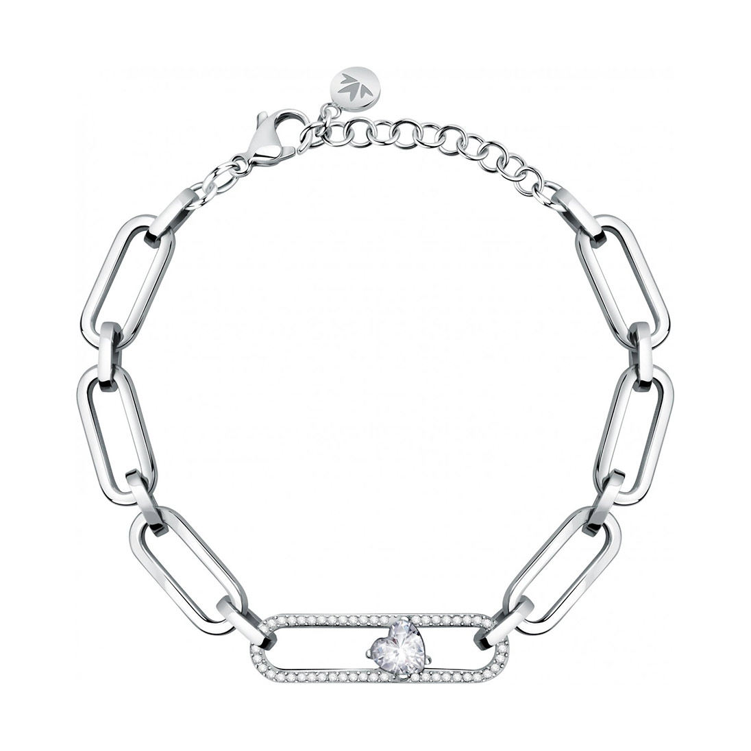Bracciale Donna In Acciaio MORELLATO Maglie Rettangolari Cuore Di Zirconi SATP06