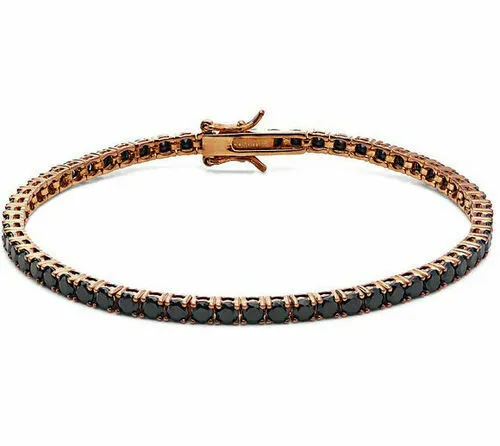 Bracciale Tennis 18cm Argento Placcato Oro Rosa 18kt Zirconi Neri Brillanti 3mm