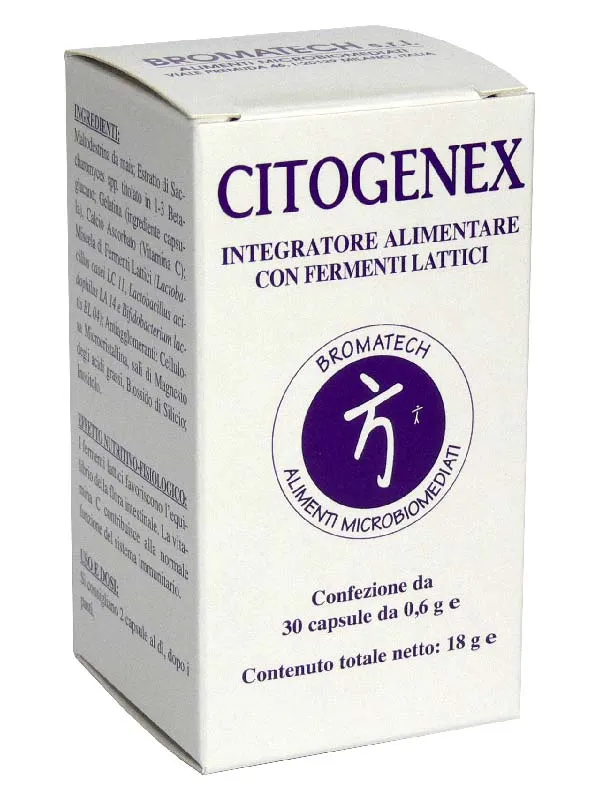 Citogenex 30 capsule è un integratore a base di fermenti lattici che favorisce l’equilibrio della flora intestinale e la vitamina C contribuisce alla normale funzione del sistema immunitario.