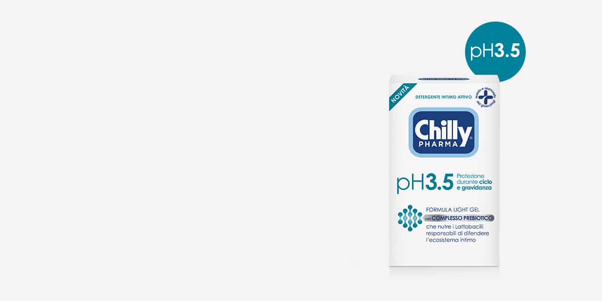 Chilly Pharma pH3.5 ha una Formula Light Gel per un’efficace azione di difesa e protezione ideale durante il ciclo e la gravidanza.