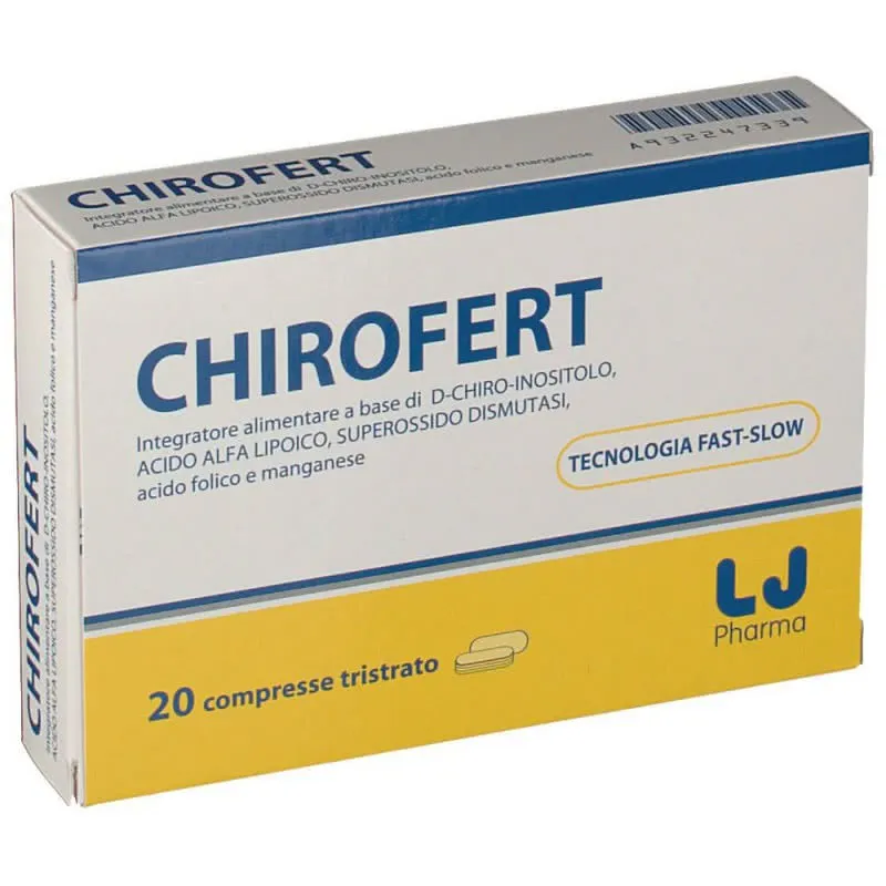 Chirofert è un integratore alimentare a base di D-Chiro-Inositolo, acido alfa lipoico, superossido dismutasi, acido folico e manganese, che risulta utile in caso di ridotto apporto con la dieta o di aumentato fabbisogno dei nutrienti che lo costituiscono.