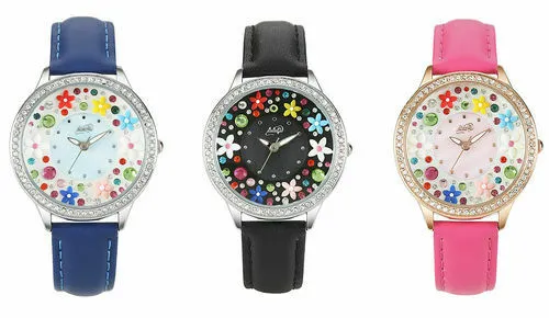 Didofa Orologio Donna Pelle Quadrante 3D Diamonds Floreale Madreperla Lista 79€