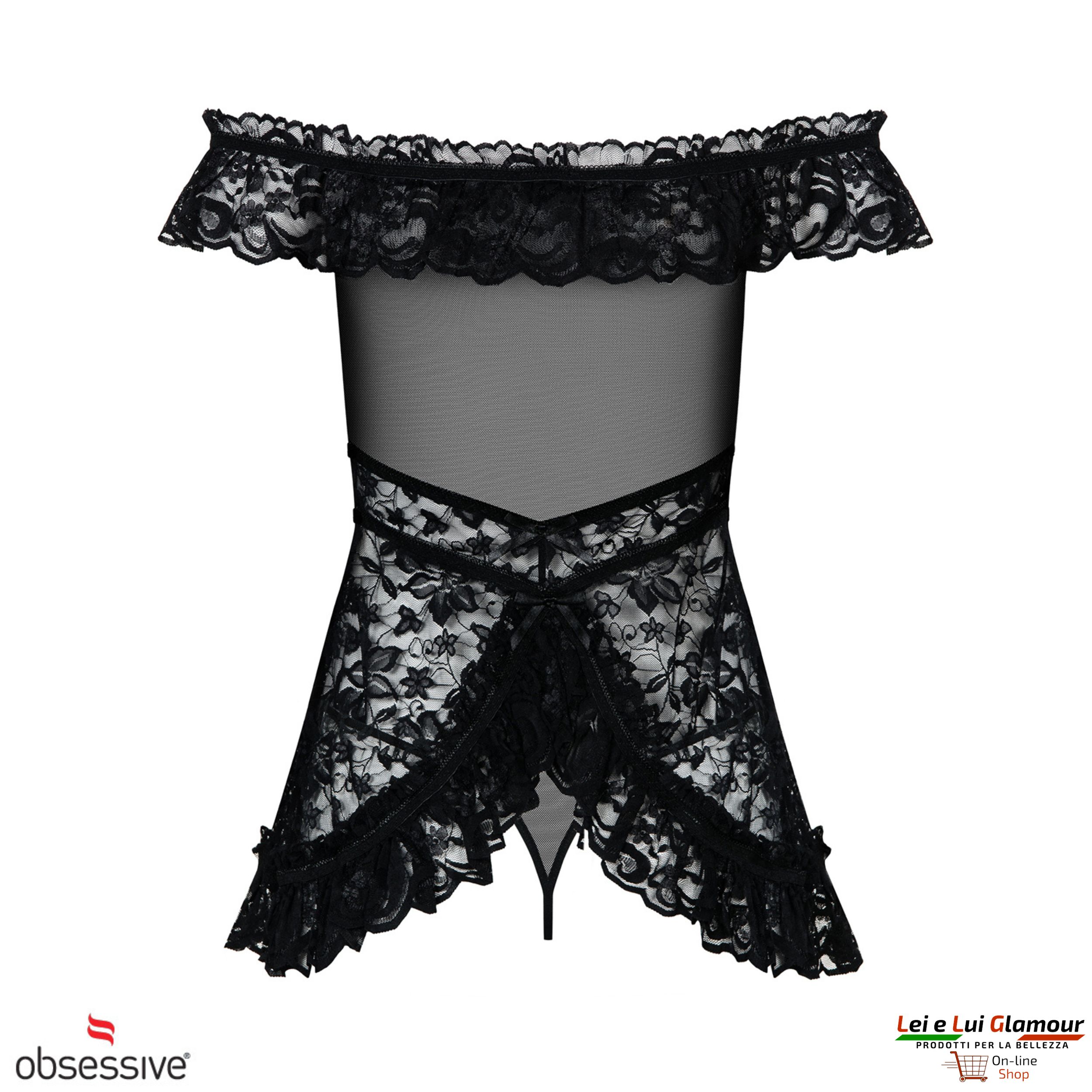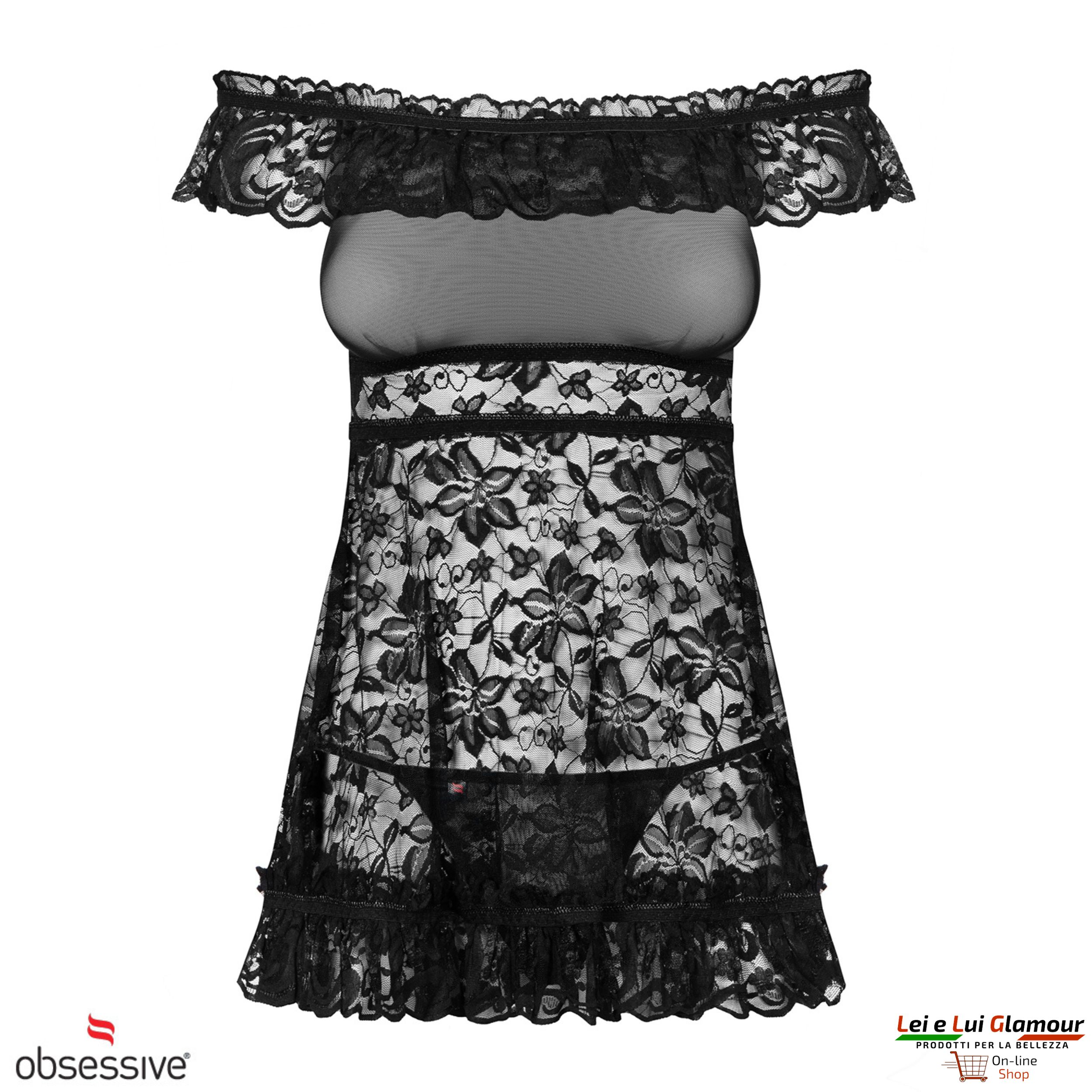 Questa romantica chemise in coordinato con il sexy perizoma in tulle e pizzo è il set Flores di OBSESSIVE.