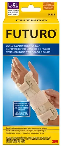 Lo stabilizzatore per polso Deluxe Futuro contribuisce ad offrire una comoda protezione e un supporto fermo a polsi lesionati, deboli o che richiedano una stabilizzazzione rigida in seguido ad ingessatura.