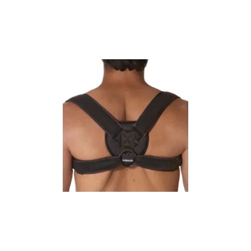 Posizionamento: si consiglia di fare effettuare il primo posizionamento da uno specialista qualificato. Aprire e distendere completamente le cinghie. Staccare dalle cinghie le estremità a “pinza di coccodrillo” munite di chiusure a strappo. Posizionare lo scudo imbottito tra le due scapole con il logo Dr. GIBAUD® rivolto verso il basso. Far passare le cinghie sopra le spalle e successivamente sotto le ascelle. Infilare le estremità nell’anello fissato allo scudo facendole passare dal basso verso l’alto; ripiegare le estremità sulle cinghie stesse. Tirare con forza le due cinghie sino ad ottenere la retropulsione delle spalle. Se necessario tagliare le cinghie della lunghezza desiderata, riposizionare le estremità a “pinza di coccodrillo” e fissarle sull’inserto rimovibile a doppia chiusura a strappo presente sulle cinghie stesse.