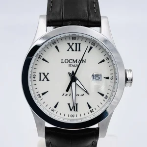 - QUADRANTE NERO CON NUMERI ROMANI, LANCETTE LUMINESCENTI AL BUIO, FINESTRA DEL DATARIO AD ORE “4”