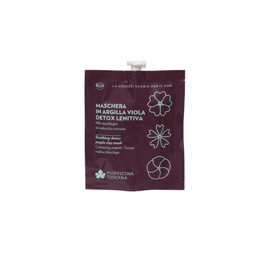 Una maschera all’argilla viola ricca di minerali micronutrienti e con un effetto detossinante per una pelle sana, elastica e levigata. L’argilla agisce in sinergia con le mucillagini di malva bio toscana, dalle proprietà  lenitive e idratanti. Grazie anche alla presenza di sostanze emollienti, questa maschera ha una consistenza cremosa, confortevole sulla pelle che lascia pulita e riequilibrata. INCI: Aqua [Water], Kaolin, Ethylhexyl palmitate, Caprylic/capric triglyceride, Cetearyl alcohol, Glyceryl stearate, Helianthus annuus (Sunflower) seed oil*, Myristyl myristate, Squalane, Cetearyl glucoside, Sorbitan olivate, Glycerin, Malva sylvestris (Mallow) leaf extract*, Saccharide isomerate, Propanediol, Parfum [Fragrance], Phenethyl alcohol, Xanthan gum, Undecyl alcohol, Tetrasodium glutamate diacetate, Benzyl salicylate, Limonene, Hydroxycitronellal, Hexyl cinnamal. *da agricoltura biologica