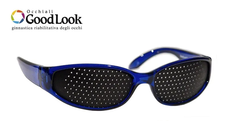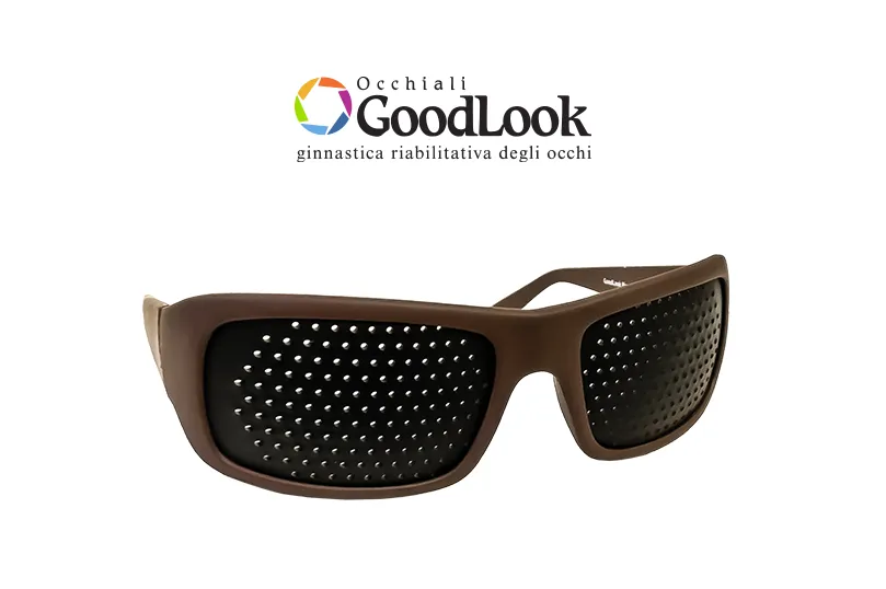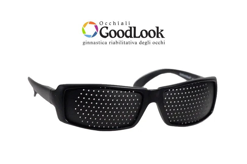 La particolare conformazione degli occhiali GoodLook, associata alla specifica disposizione dei fori, obbligano l’occhio ad un costante movimento di riallineamento, nella incessante ricerca della sorgente luminosa. Questi impercettibili micro movimenti costituiscono una ginnastica passiva che migliora l’ossigenazione degli occhi, migliorandone la riabilitazione visiva.