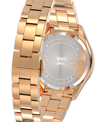 QUESTO ELEGANTE OROLOGIO DA DONNA RACCHIUDE IN SE UNA CASSA DA 34 x 10 mm, CON UN MOVIMENTO CHRONO SVIZZERO AL QUARZO “ISA” E UN CINTURINO IN ACCIAIO PLACCATO ORO ROSA 18kt
