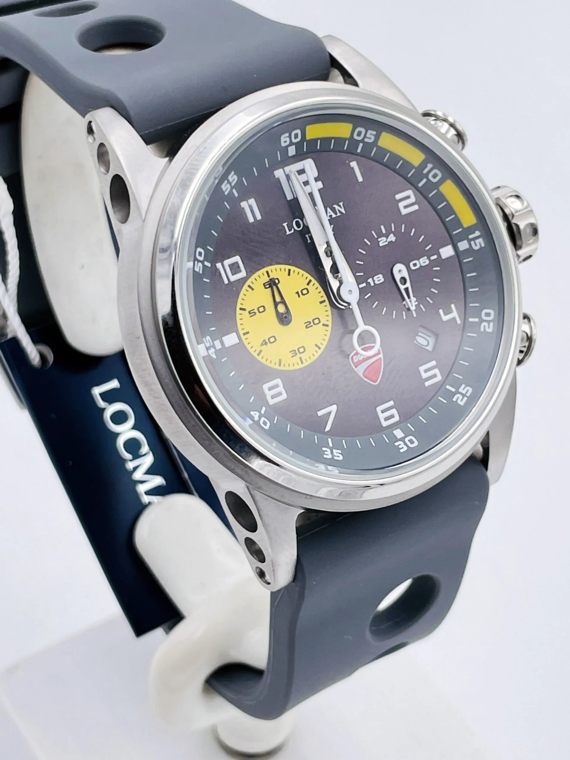 Un’edizione limitata di 3000 referenze numerate, nata dall’accordo con la casa motociclistica di Borgo Panigale. Le due aziende, simbolo di eccellenza italiana, hanno deciso di unire il proprio know-how per realizzare un prodotto in grado di esprimere l’identità di entrambi i marchi. Da un lato l’expertise di DUCATI, leader nel settore motociclistico nel mondo, dall’altro la competenza di LOCMAN nel settore dell’orologeria, pongono le basi perfette per una partnership all’insegna dell’innovazione e del design.