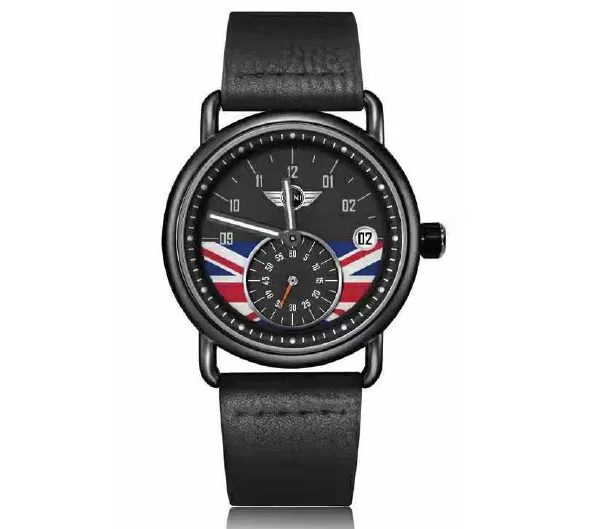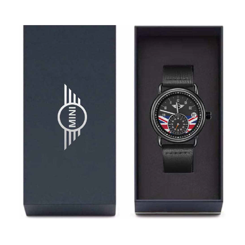 Orologio Uomo MINI COOPER BMW In Pelle Nera Cassa Acciaio 40mm Bandiera Inglese