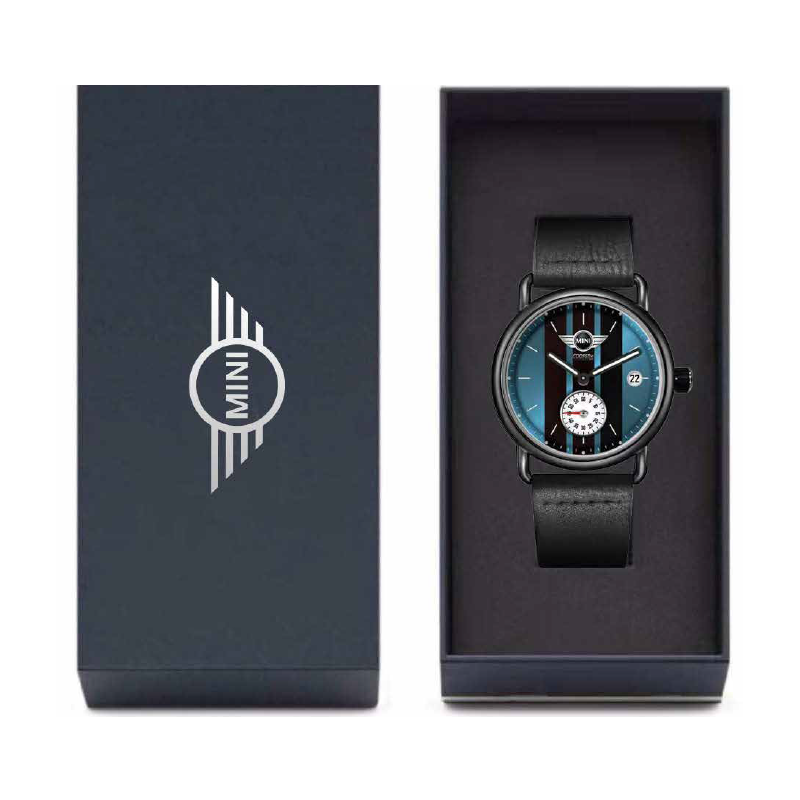 Orologio Uomo MINI COOPER In Pelle Quadrante Blu Cassa Acciaio Nero 40mm