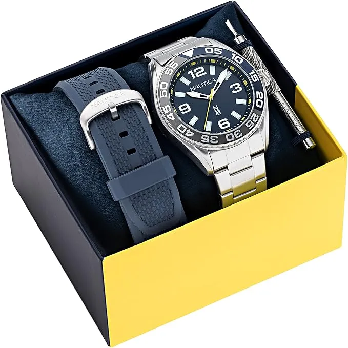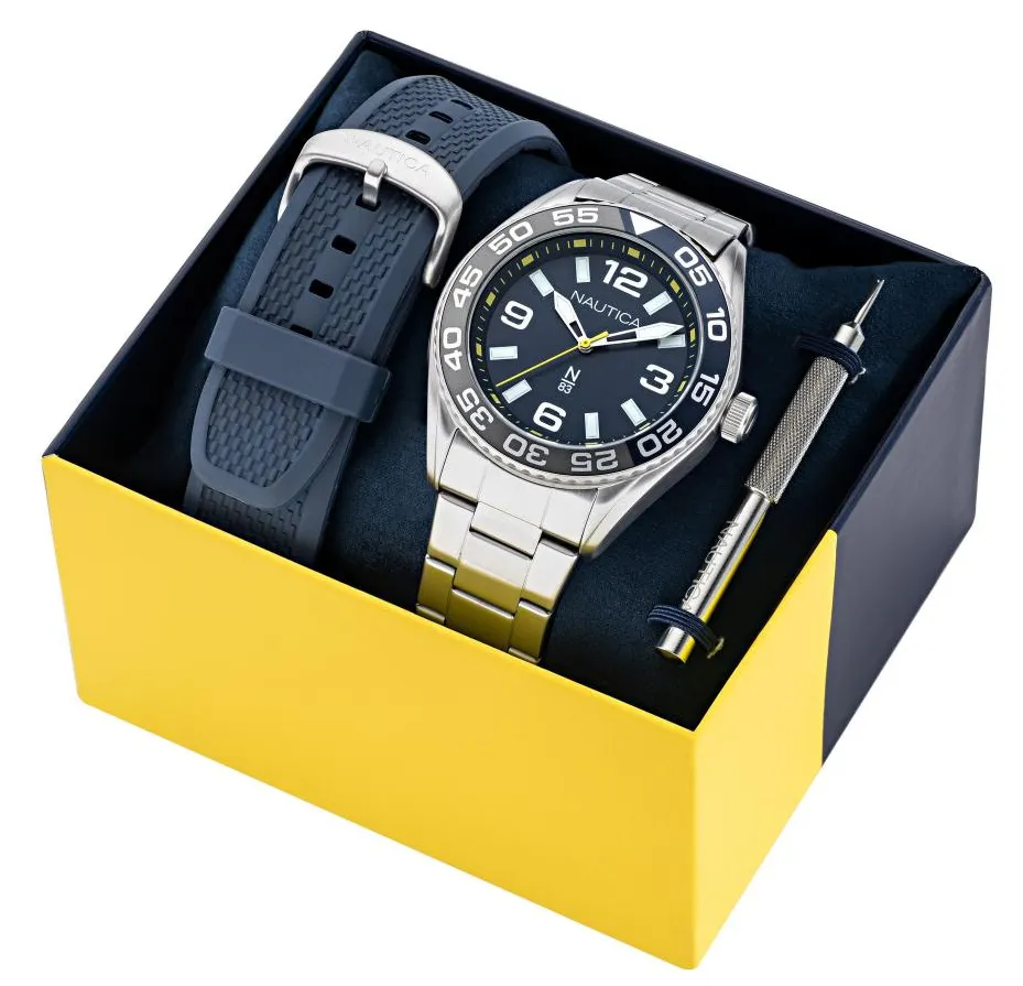 Orologio Uomo Nautica Special Box Doppio Cinturino Gomma Acciaio + Cacciavite