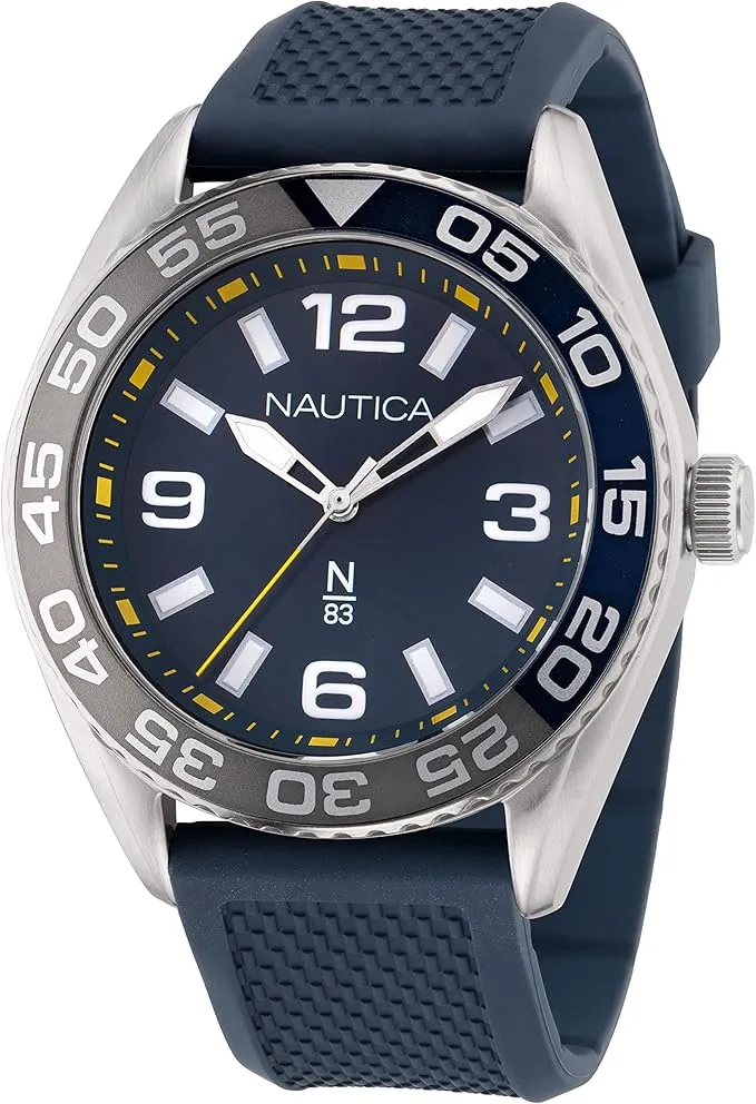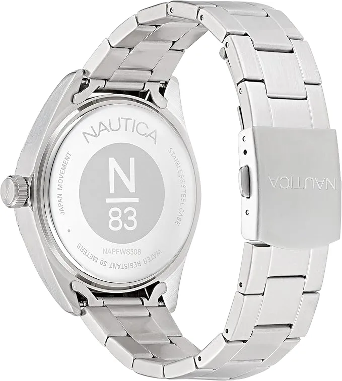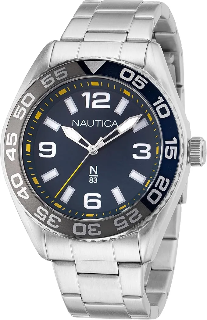 OROLOGIO UOMO FIRMATO NAUTICA, DESIGN ITALIANO, MOVIMENTO SOLO TEMPO AL QUARZO, CASSA IN ACCIAIO INOSSIDABILE 43mm – CONFEZIONE CON DOPPIO CINTURINO ACCIAIO / GOMMA – WR 50 mt – CACCIAVITE OMAGGIO NELLA CONFEZIONE