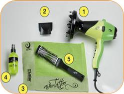 La ricca confezione contiene anche: un leggero e funzionale diffusore a doccia, un comodo sacchetto porta-kit da viaggio, una crema anti crespo alla Cheratina e olio di Argan e una spazzola termica.