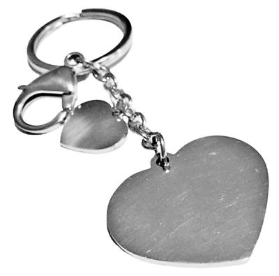 Portachiavi Donna Cuore Grande E Piccolo In Acciaio Con Incisione E Moschettone