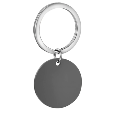 Portachiavi Uomo Donna Targhetta Nera Rotonda Acciaio + Incisione Personalizzata