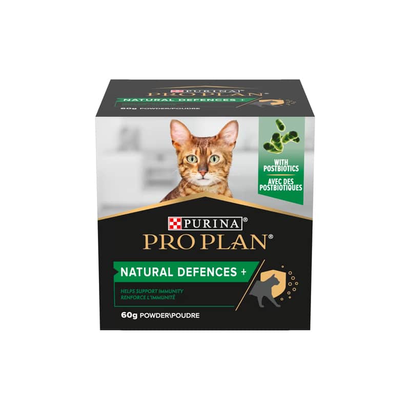 Pro Plan Supplement Natural Defences + è disponibile in formato da 60 g. Conservare in luogo fresco e asciutto, possibilmente lontano dalla luce solare e tra 10 e 25°C.