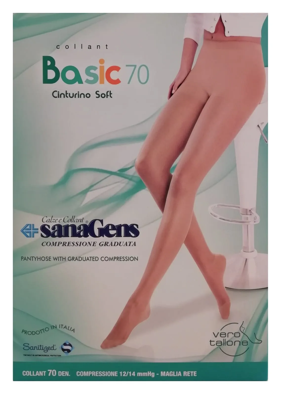 I collant Basic 70 denari di Sanagens sono calze terapeutiche, elastiche, finalizzate alla prevenzione di gonfiori e crampi serali.