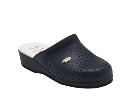 Clog Backguard è caratterizzato da un plantare anatomico con una calzata ampia. La tomaia è realizzata interamente in pelle traforata. Scholl Clog Backguard è indicato a personale medico, sanitario e a tutti i professionisti che trascorrono tutta la giornata in piedi. Clog Backguard è un dispositivo di protezione indiviguale di classe I.