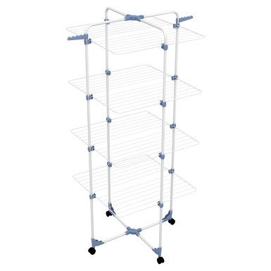 Stendibiancheria verticale con snodo speciale: si può usare del tutto aperto o a metà, in funzione del bucato. 4 livelli di griglie ripiegabili, angolari con ruote piroettanti, protezioni anti-graffio e 2 portagrucce. Utilizzabile anche nel box doccia. Made in Italy.