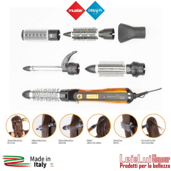 [icon icon=icon-ok size=16px color=#800000 ] Kit accessori in dotazione: termospazzola piccola, termospazzola media, termospazzola grande, ferro arricciacapelli, spazzola piatta per pettinare ed asciugare, bocchetta per asciugatura” effetto phon”.
